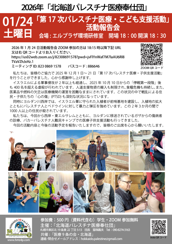 主催: 北海道パレスチナ医療奉仕団
